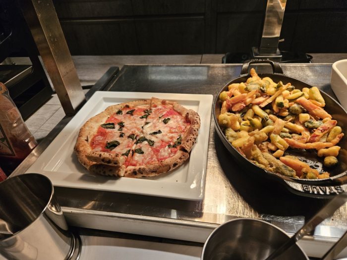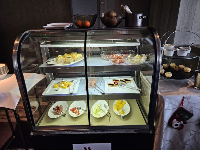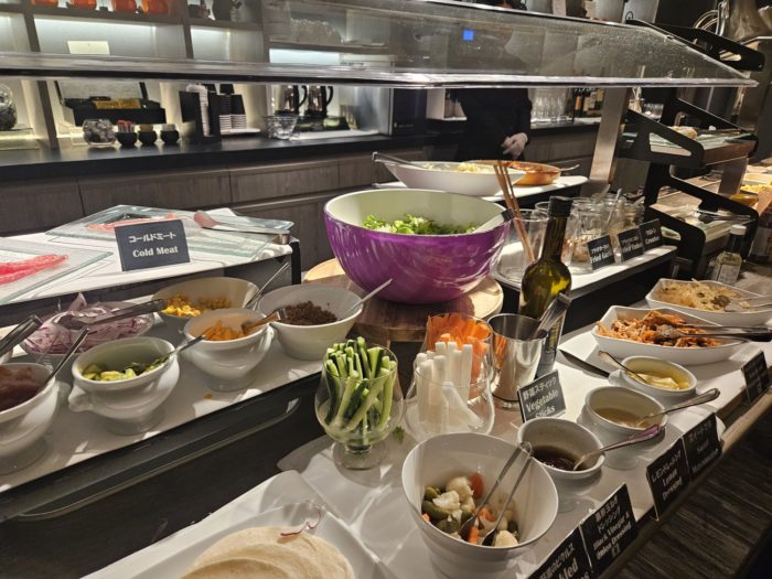 さらにカクテルタイムに行くと、コールドミールからホットミールまでさまざま並んでいました。