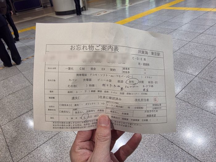 まさかまさか。本当に新幹線の中に落としてた。そして、拾ってくれていた。