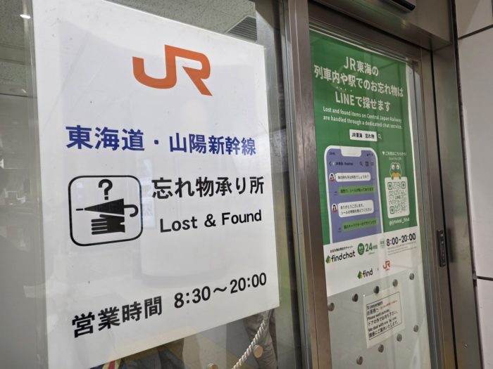 えー、こちらが、JR東海の東京駅忘れ物窓口。
