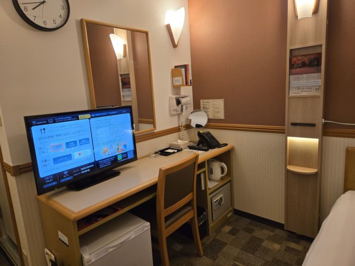 一度泊まった時に部屋が狭いと思った記憶があるけれど、朝のフライトだから夜寝るだけだしね。