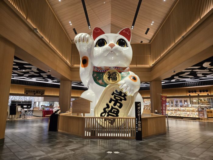 ここのイオンはでっかいまねき猫が鎮座しています。