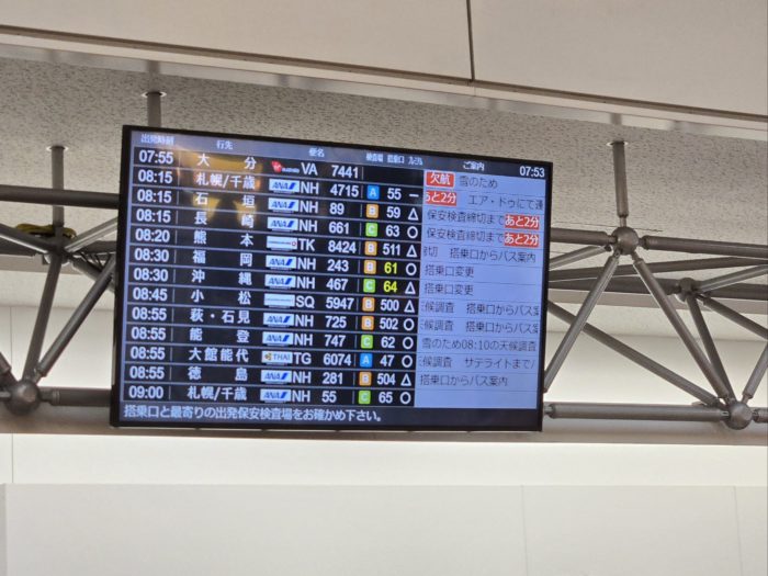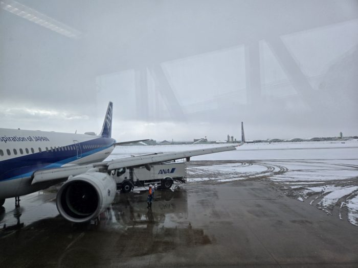 ちなみにこの日は日本列島に寒波がきていて、ANA便の欠航も出ていました。