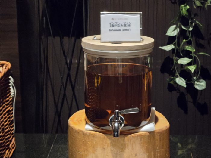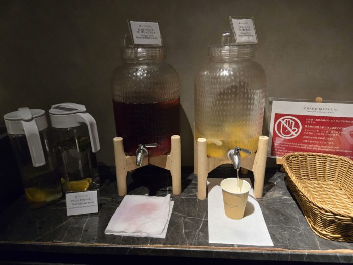 ビネガーとローズヒップのドリンクが用意されており、スッキリできます。
