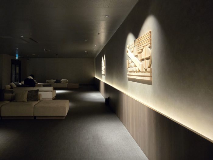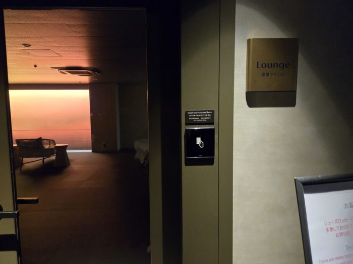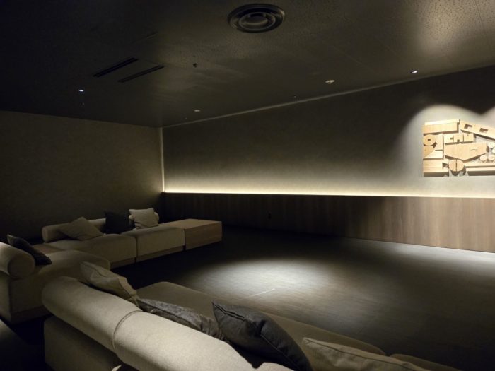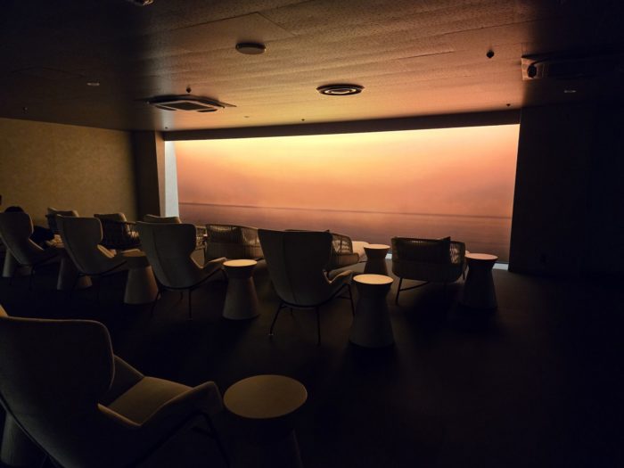 この「温泉ラウンジ」のすぐ隣にはさらに照明が落とされたシアターのような雰囲気のラウンジ。