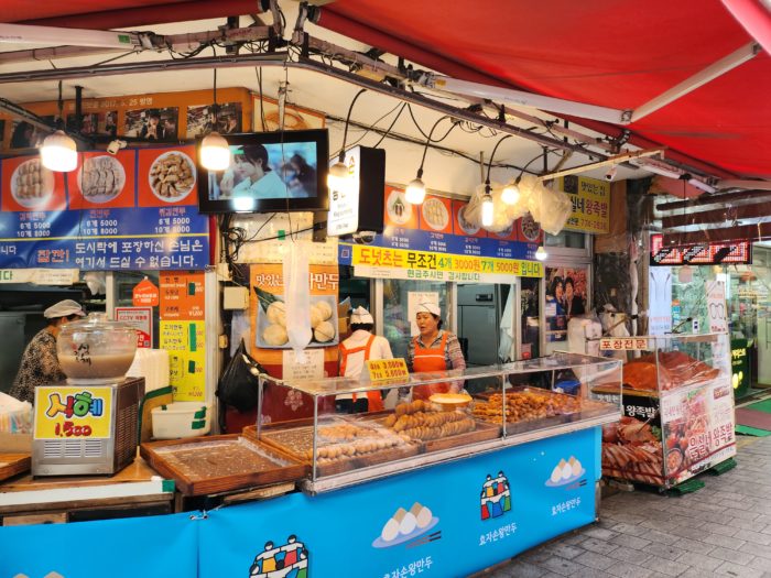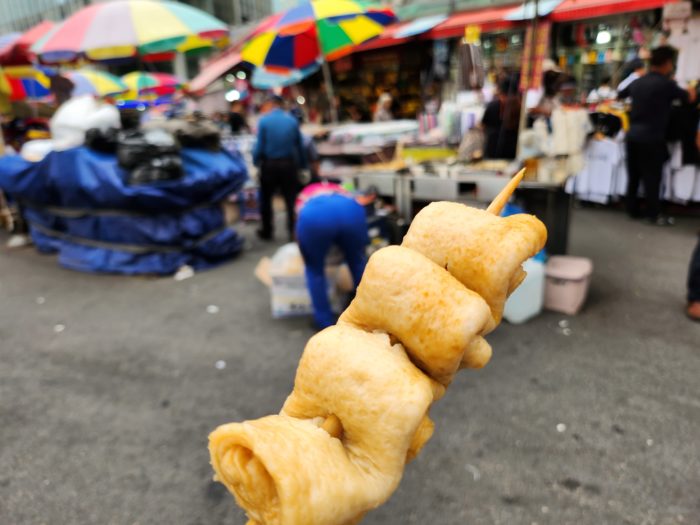 バスで空港に向かいますが、その前に晩御飯がわりに南大門で食い歩きをしました。