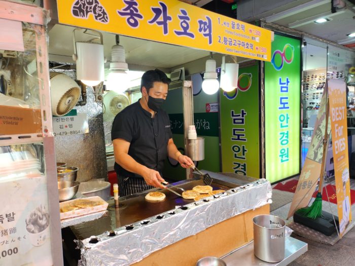 焼いているのは韓国ホットケーキ。