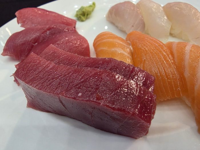 捌いたまぐろの寿司と刺し身、うまかったー。