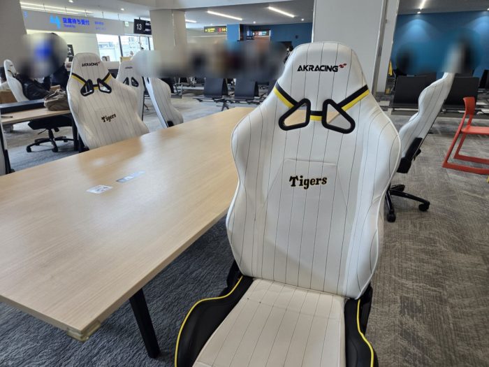 搭乗ゲートはイスがめちゃくちゃ大阪仕様でビックリしました。阪神タイガース。