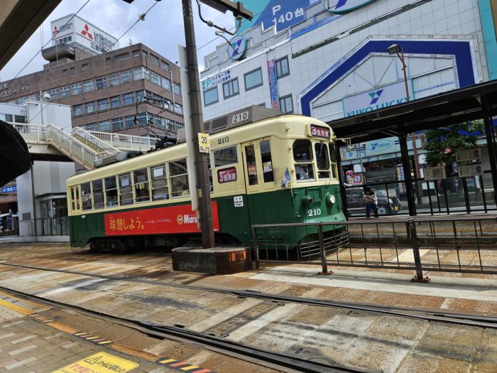 拠点の長崎駅から移動は路面電車。