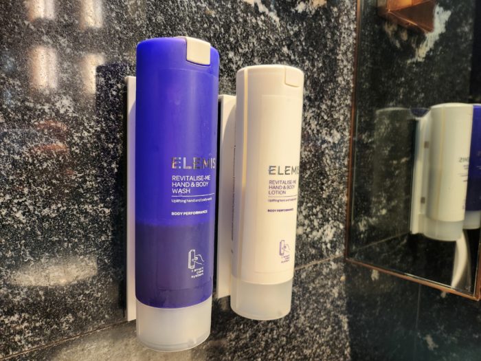 あ、このラウンジのお手洗いのソープはElemisでした。嫌いじゃない。