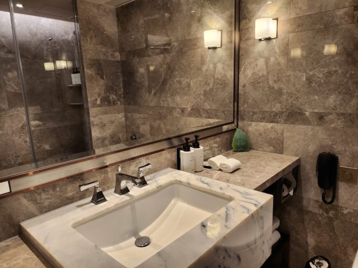 バスルームも前回と違いバスタブがありません。が、ラグジュアリー感は十分。