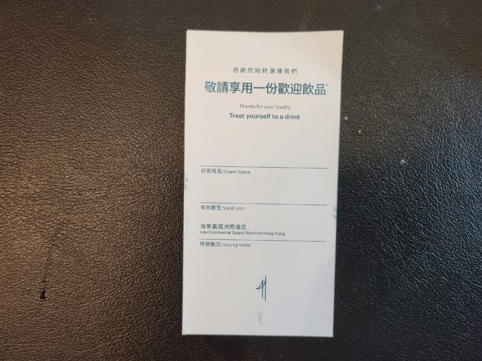 インターコンチネンタル・アンバサダー会員としてポイントかウエルカムドリンクのオファーを受けました。