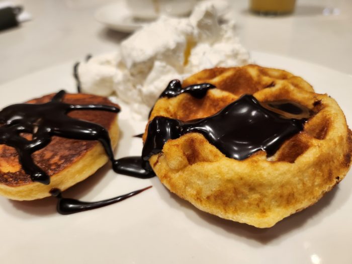 甘党としては、パンケーキとワッフルに生クリームが用意されているのもたまらんです。