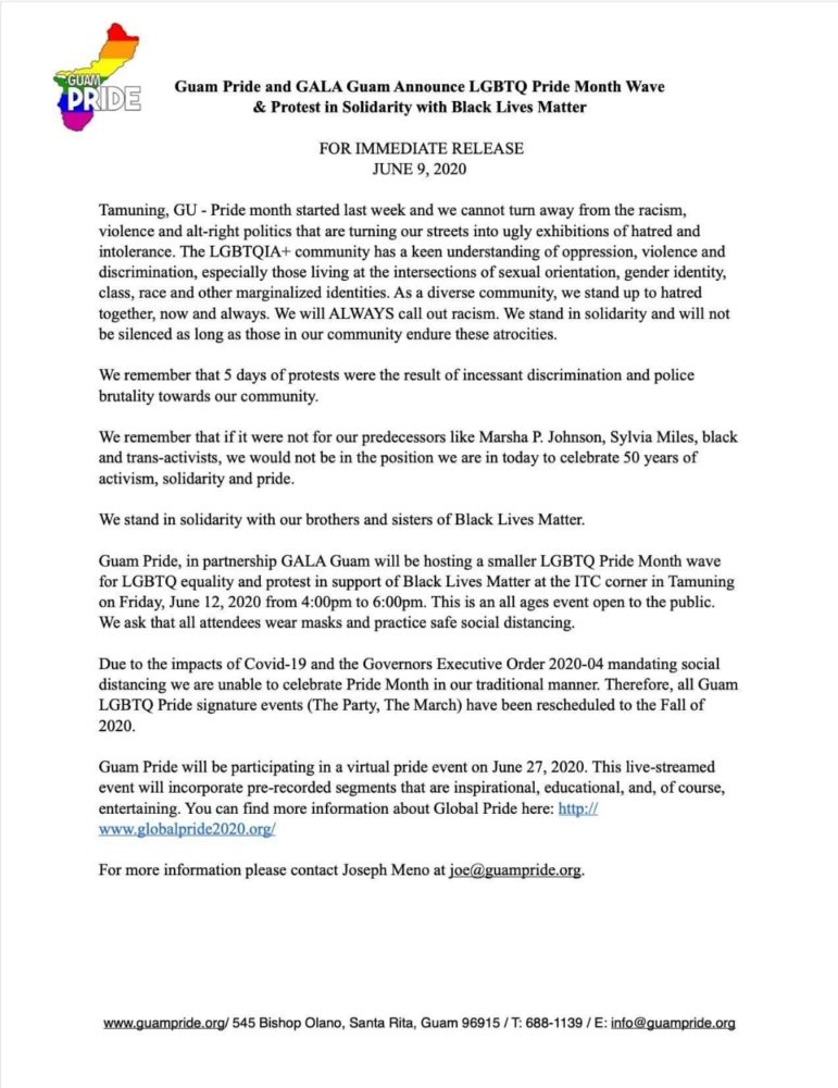 今年は新型コロナの拡散を防ぐため、例年6月に行われるグアムプライドの開催が見送られています。