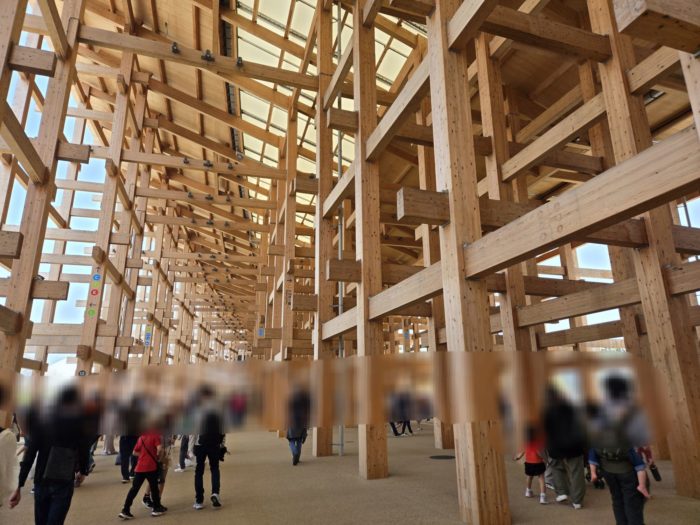 会場が広いのでどっちを目指して歩くか悩ますが、とりあえずシンボルである木製の大屋根リングへ。