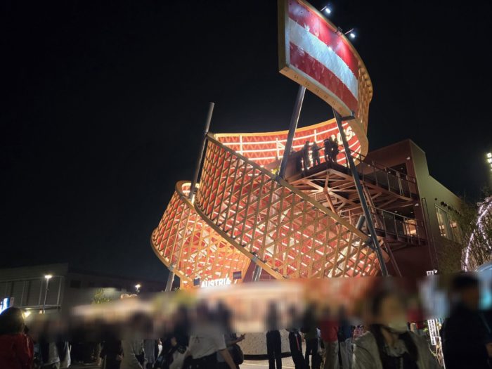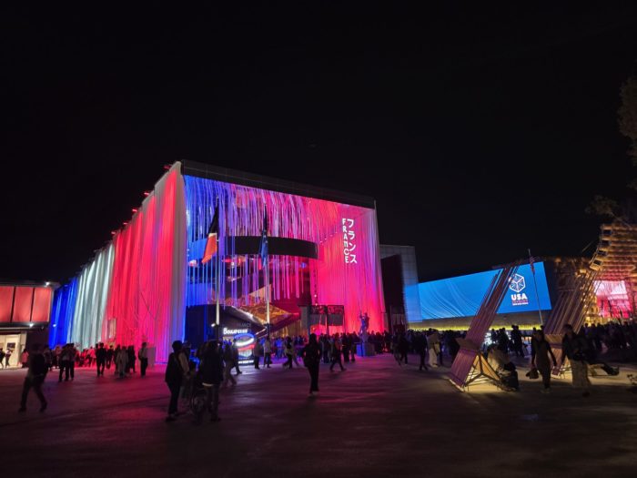 夜は昼間は混んでいるパビリオンが空いていたり、入らなくても外観だけでめちゃくちゃきれいなパビリオンがあったり。