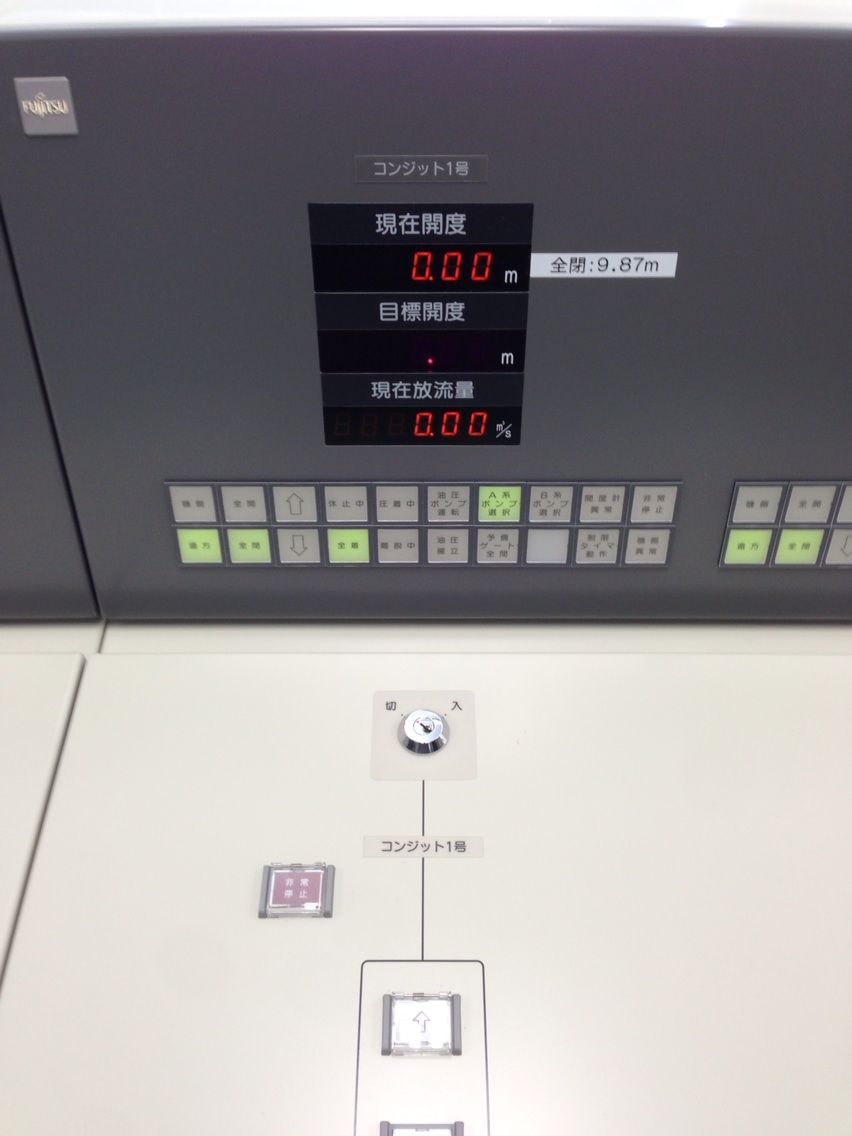 なんだかかっこいい管理室。この機械で放流の操作をするそうです。