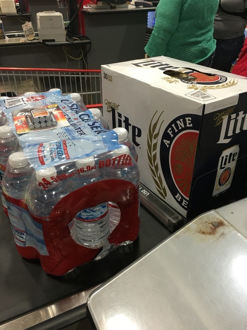 レジが混んでいたから、その重い水を持って並んでたんです。