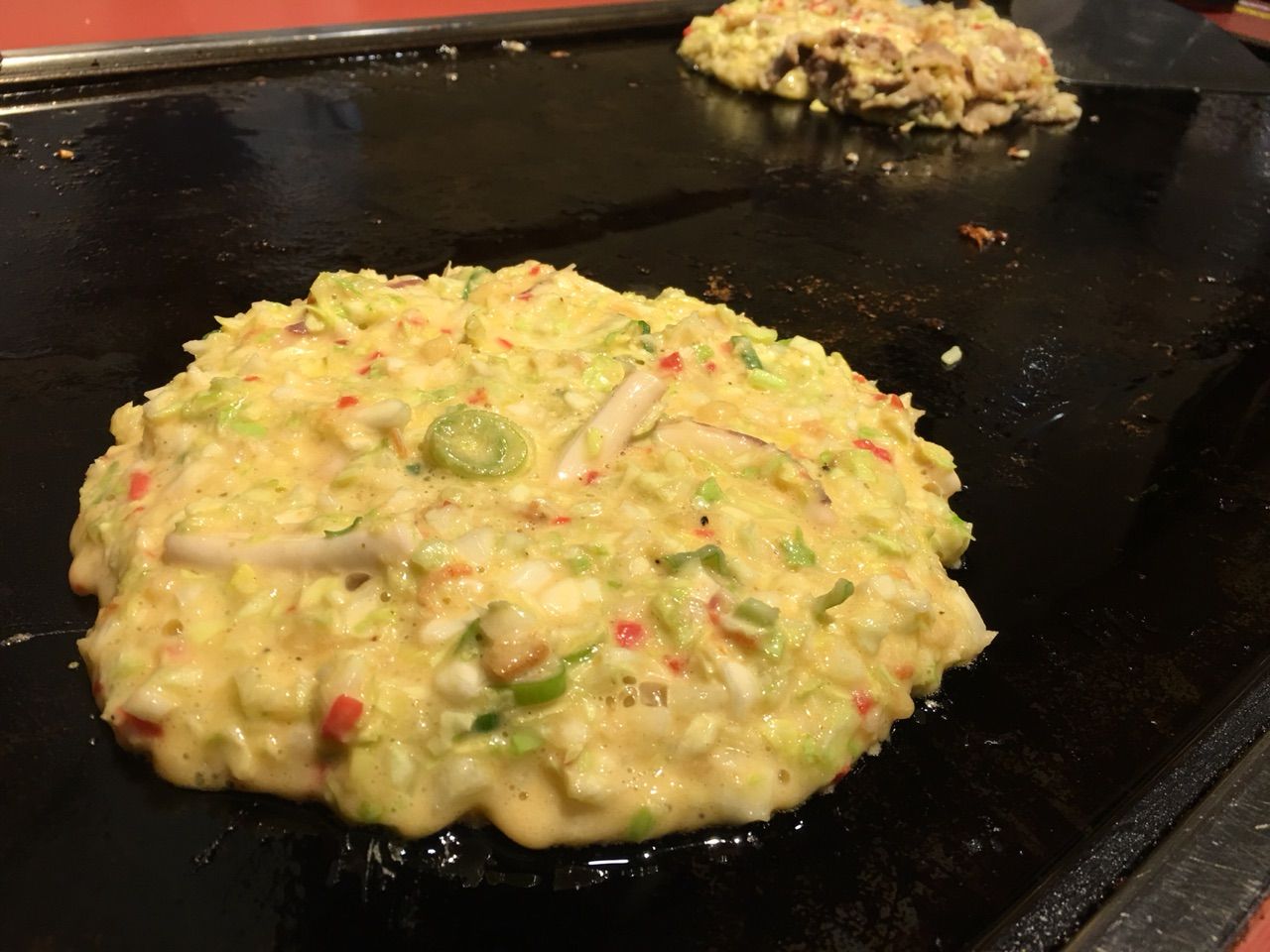 はい、お好み焼きを焼く台湾ボーイ。笑