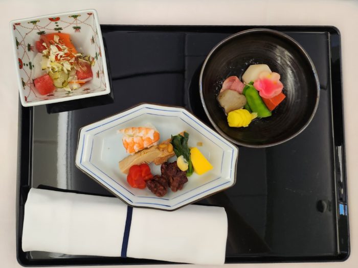 長距離路線だからかゆったりとしたサービスで、機内食の提供は離陸後1時間半ぐらい経ってからでした。