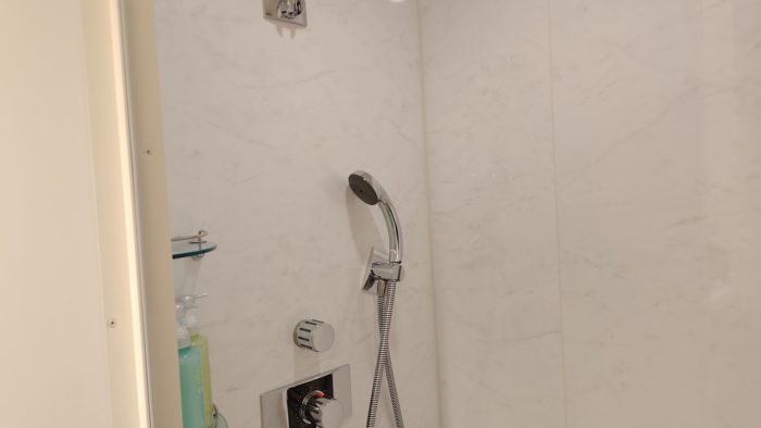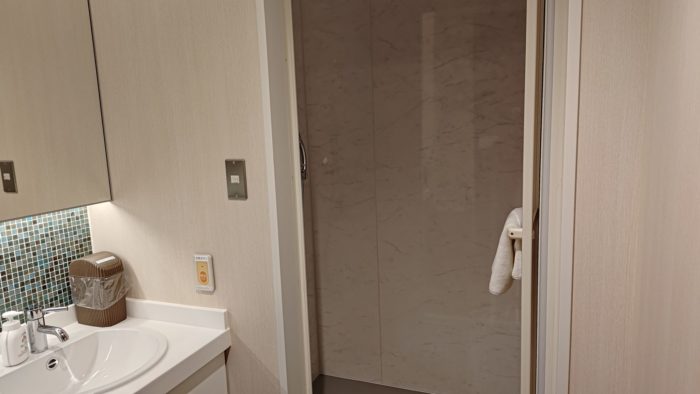 日本的な狭いけど清潔で使いやすいシャワールーム。ネットカフェの中にあるシャワールームみたいな。